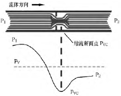 圖1 液體流經調節閥時壓力和流速間的關系