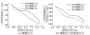 圖5 徑向槽數不同時倒角半徑對應力的影響