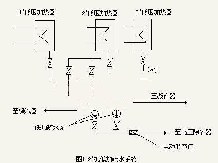 宏偉熱電廠2#機原低加疏水系統運行很不正常,尤其兩臺低加疏水泵,損壞頻繁,有時同時出現故障,對安全生產及經濟運行影響很大,如圖1示: