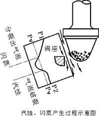 | 介質通過截面最小的節流口時流速是最大的。流速(或動能)的增加伴隨著壓力(或勢 能)的大大降低。當壓力低于介質飽和蒸汽壓時,氣泡就會在介質中形成。隨著節流口處壓 力的進一步下降,氣泡會大量地形成。在此階段閃蒸和汽蝕之間沒有本質的差別,但是對閥 門的結構破壞的可能性卻是肯定存在的。 | |