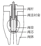 為保證閥門開度滿足要求,原閥蓋襯套靠閥芯側沿軸向去除39mm,加工面最大粗糙度為6.3μm。打磨氧化皮后,測量確認閥桿彎曲度、各部套間隙、閥門行程合格且閥芯活動靈活。對閥芯、閥座進行檢查,密封線合格后整體回裝。