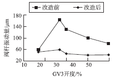 圖5 2號汽輪機GV3閥芯改造前后振動對比