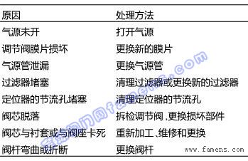 表1 調(diào)節(jié)閥不動作原因及相應(yīng)的處理方法